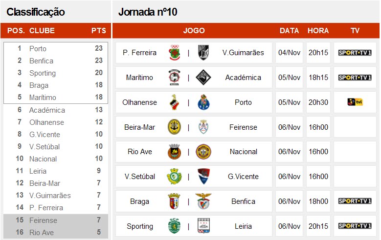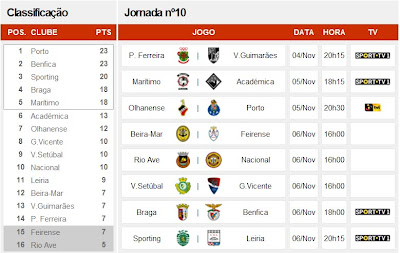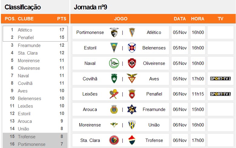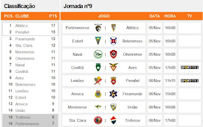 Data e Hora dos jogos da 09ª jornada Liga Orangina e da 10º jornada Liga Sagres